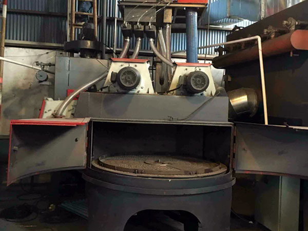 轉臺式拋丸機適用于扁平的怕碰撞的工件清理,工件平放在轉臺上,彈丸垂直拋到工件表面,能夠達到拋丸強化的目的。